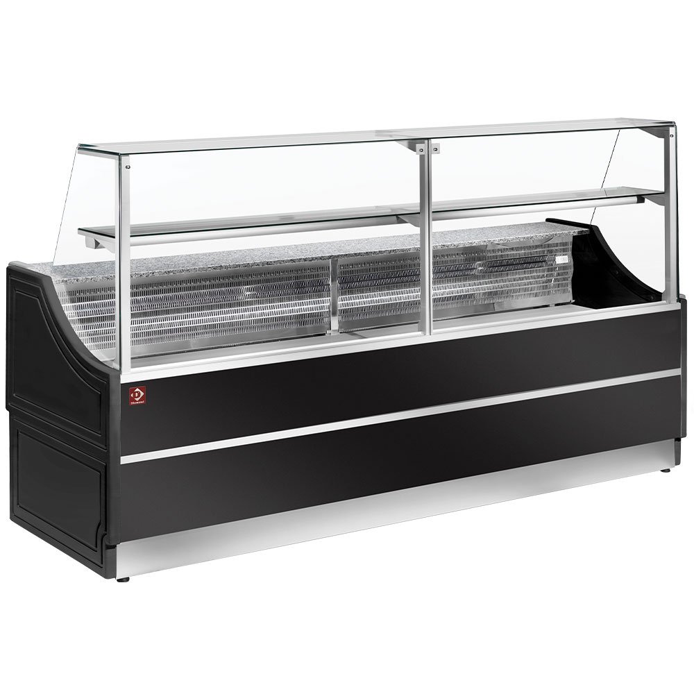 Comptoir vitrine réfrigérée à vitre droite 90°, avec réserve (OL200/B5-R/R2)